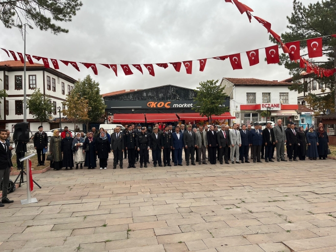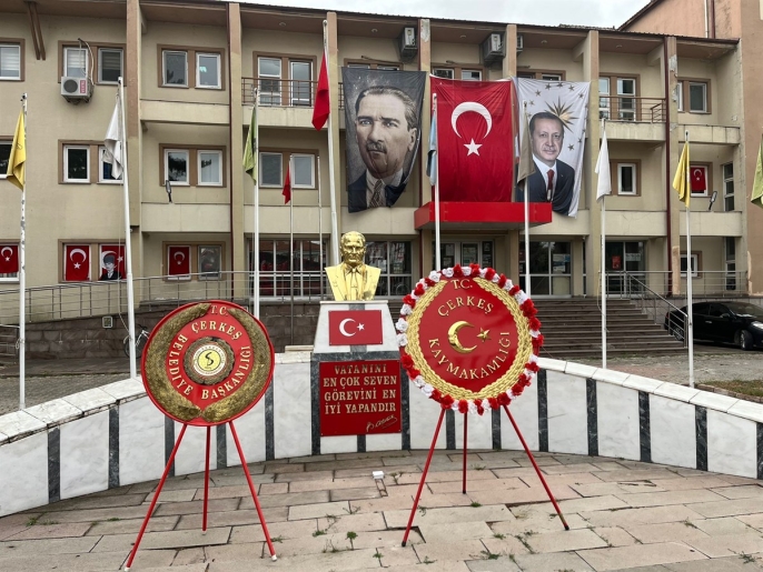 Çerkeş Hükümet Konağı önünde düzenlenen törende, Atatürk Anıtı'na çelenk sunulmasının ardından saygı duruşunda bulunuldu, İstiklal Marşı okundu.