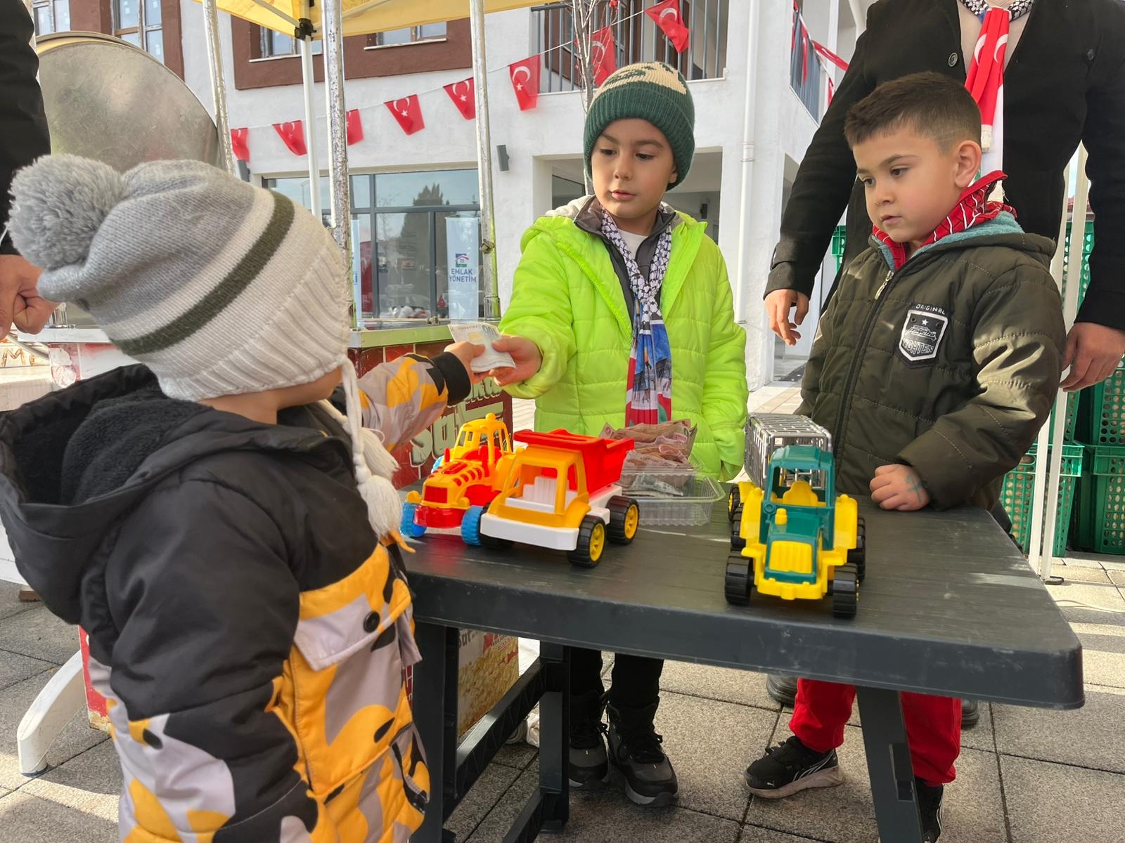Evinden getirdiği oyuncaklarını kermeste satarak gelirini Gazze'ye bağışlayan 6 yaşındaki Ahmet Akyürek vatandaşlardan tam not aldı.