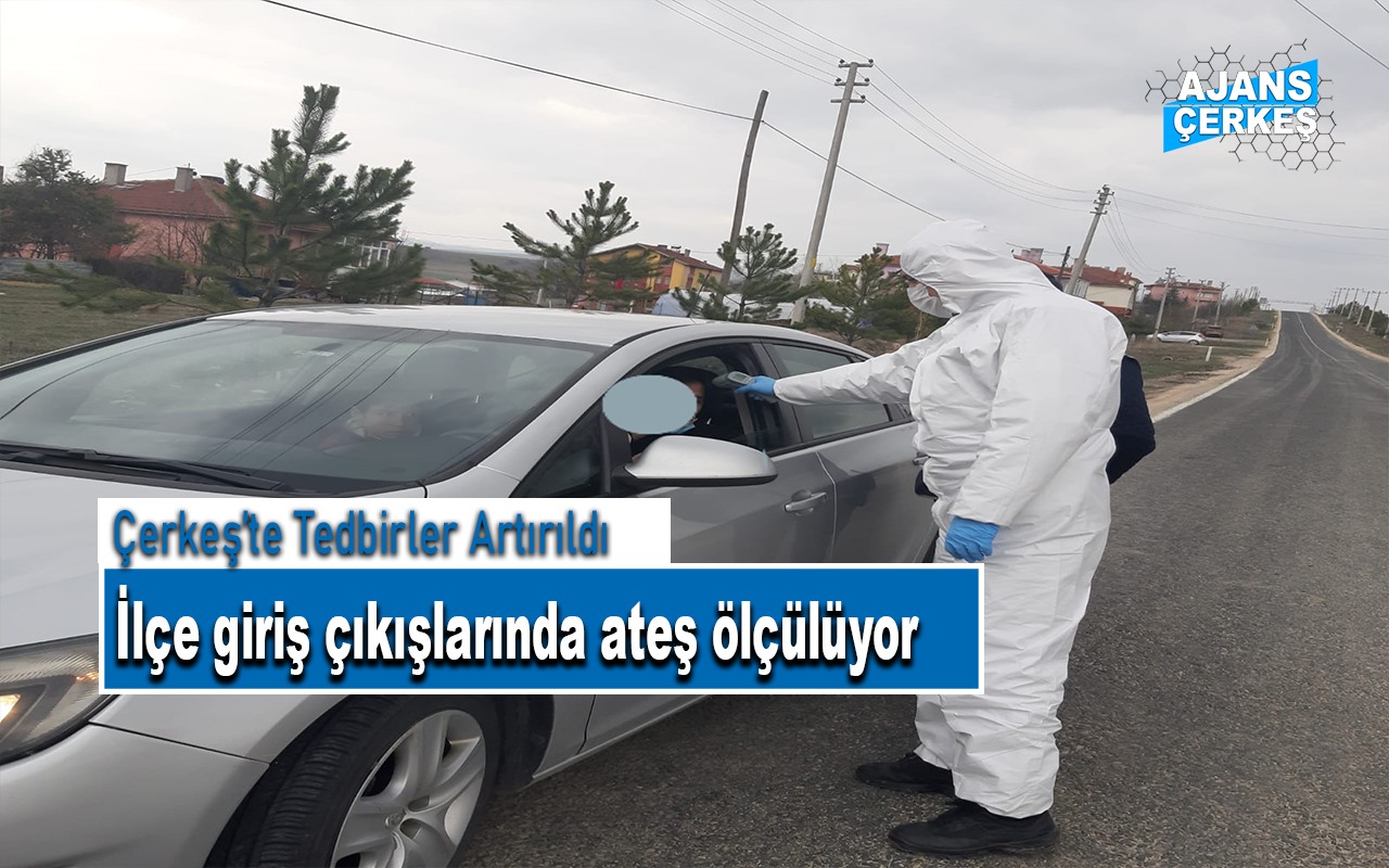 İçişleri Bakanlığı’nın almış olduğu koronavirüs tedbirler kapsamında, Çerkeş Emniyet ve Jandarma ekipleri tarafından denetim yapılıyor. Ekipler tarafından ilçeye giriş yapan ve ilçeden çıkış yapan araçlar durdurularak sürücülerin ve yolcuların ateş ölçümü yapılıyor.