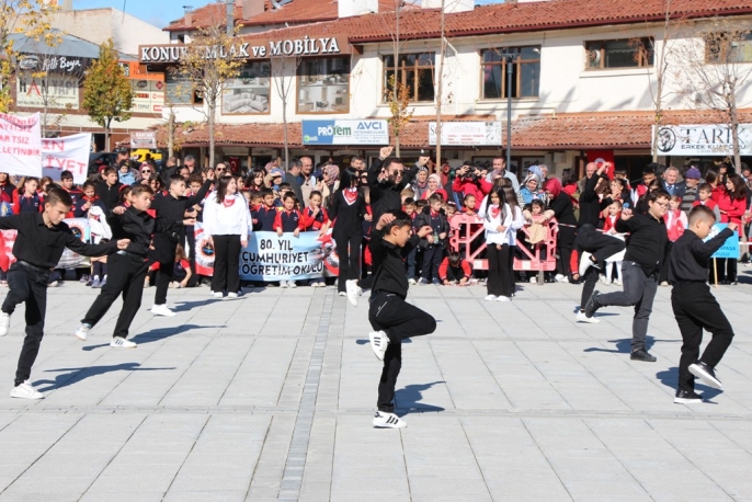 Öğrencilerin şarkı ve şiirlerini okumaları, halk oyunu ve ront gösterilerini sergilemelerinin ardından ilçe genelinde resim, şiir ve kompozisyon yarışmalarında dereceye giren öğrenciler ile Cumhuriyet Kupası Basketbol müsabakalarında dereceye giren Yıldız Kızlar ve Yıldız Erkekler basketbol takımlarına kupa ve ödüllerinin verilmesiyle birlikte program tören geçişiyle sona erdi.