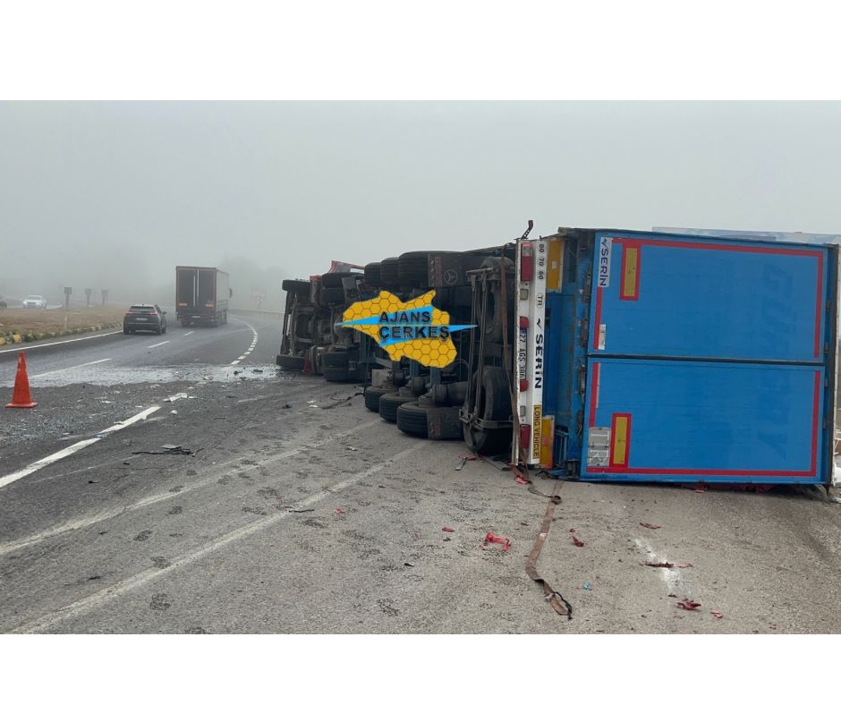 Çerkeş D-100 karayolu Dereköy mevkisinde meydana gelen tek taraflı trafik kazasında tır sürücüsü yaralandı.