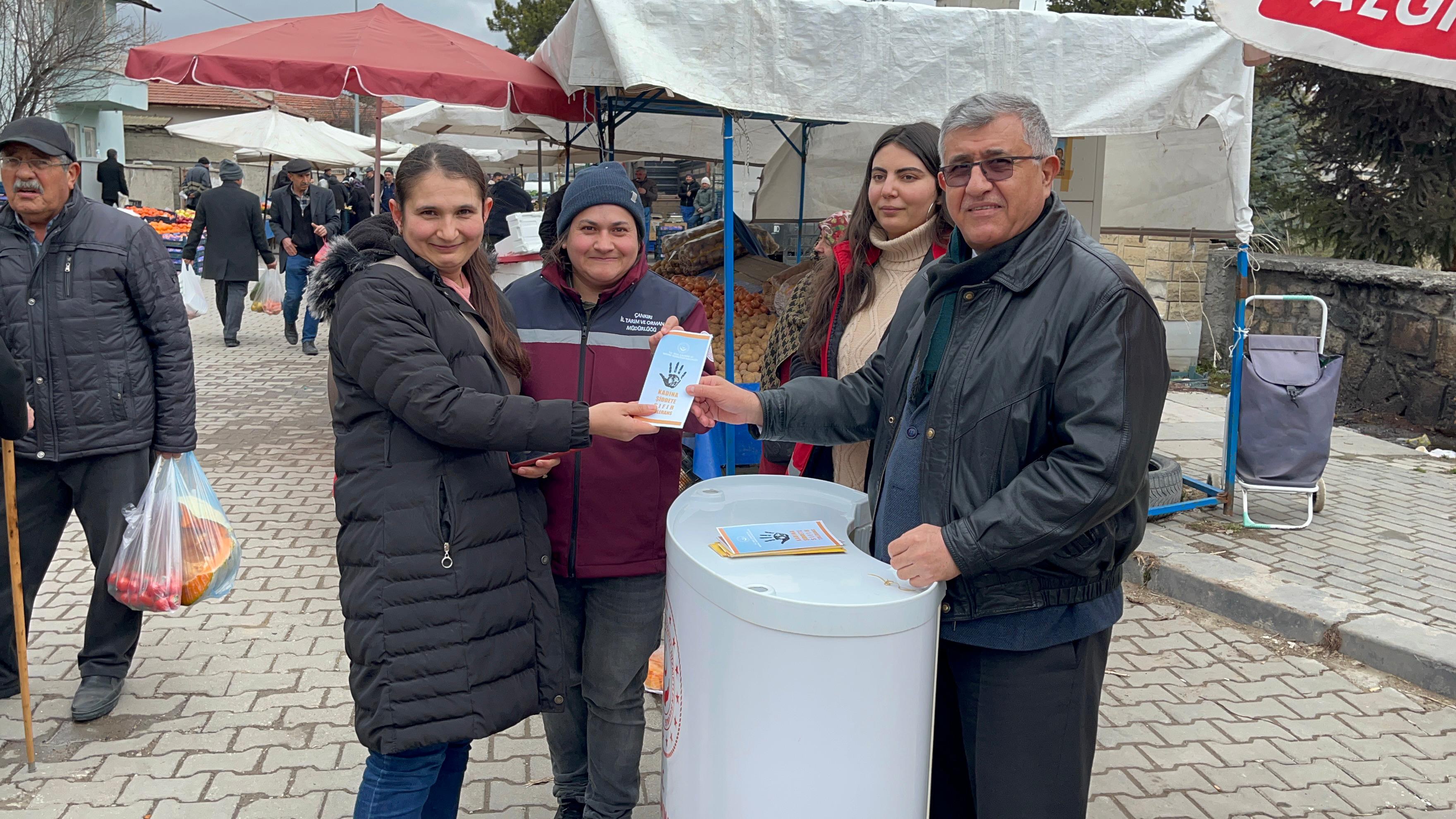 Çerkeş Kaymakamı Emir Osman Bulgurlu Kadına Yönelik Şiddete Karşı Mücadele etkinlikleri kapsamında ''Kadına El Kalkamaz'' mottosuyla Çerkeş Halk Pazarında düzenlenen etkinliğe katıldı.