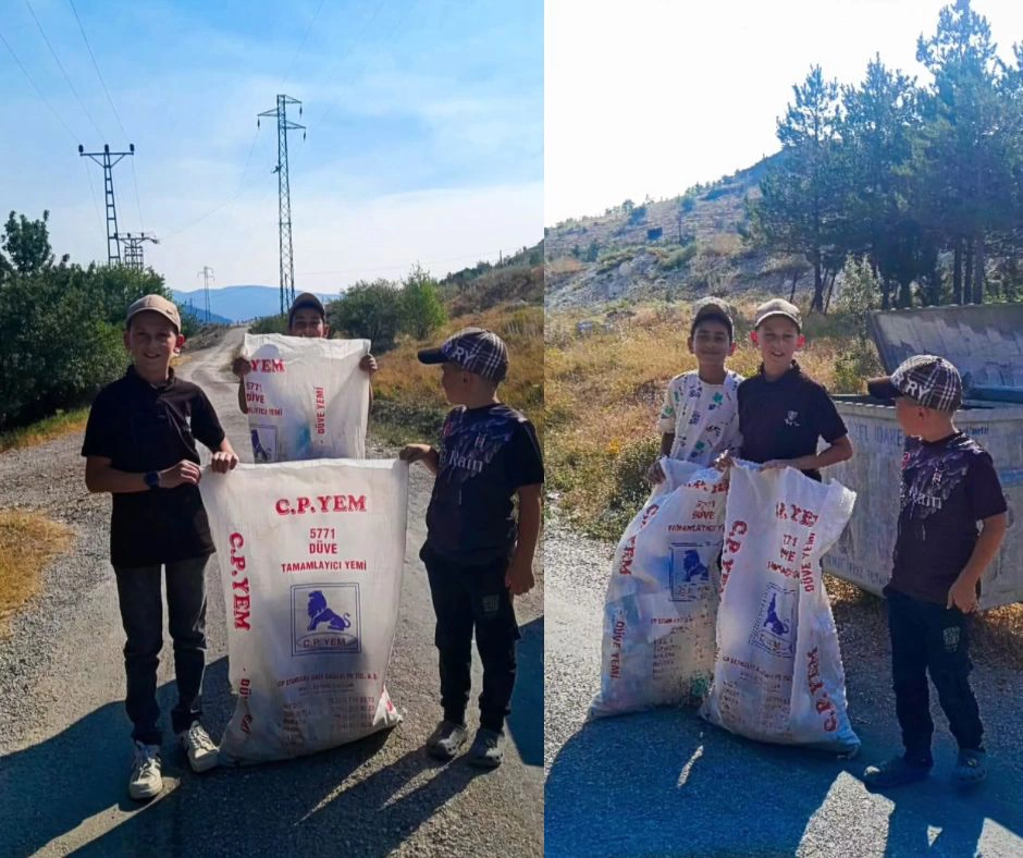 Karga Köyü sakinleri tarafından yangın riski oluşturabilecek cam ve pet gibi atıklar toplanarak çöp kutusuna atıldı.