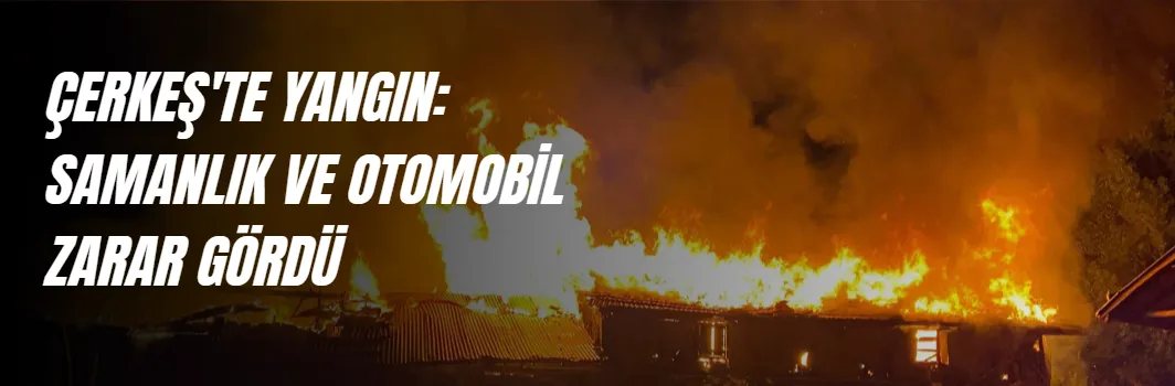 Çerkeş'te gece saatlerinde meydana gelen yangında ahır, samanlık ve otomobil kullanılamaz hale geldi.